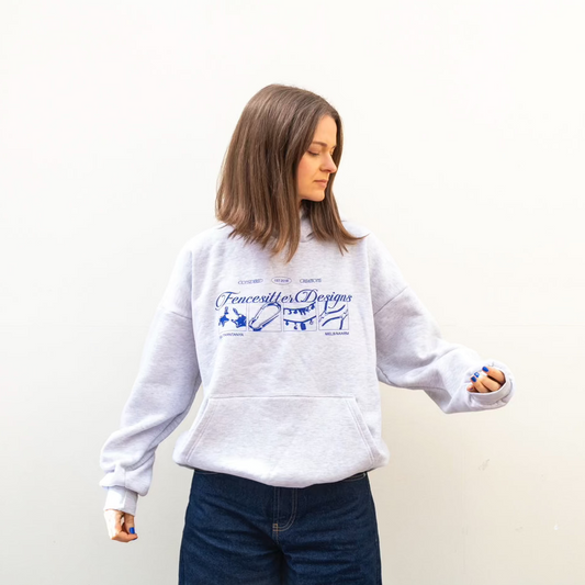 Fencesitter Hoodie - White/Grey Marle + Electric Blue